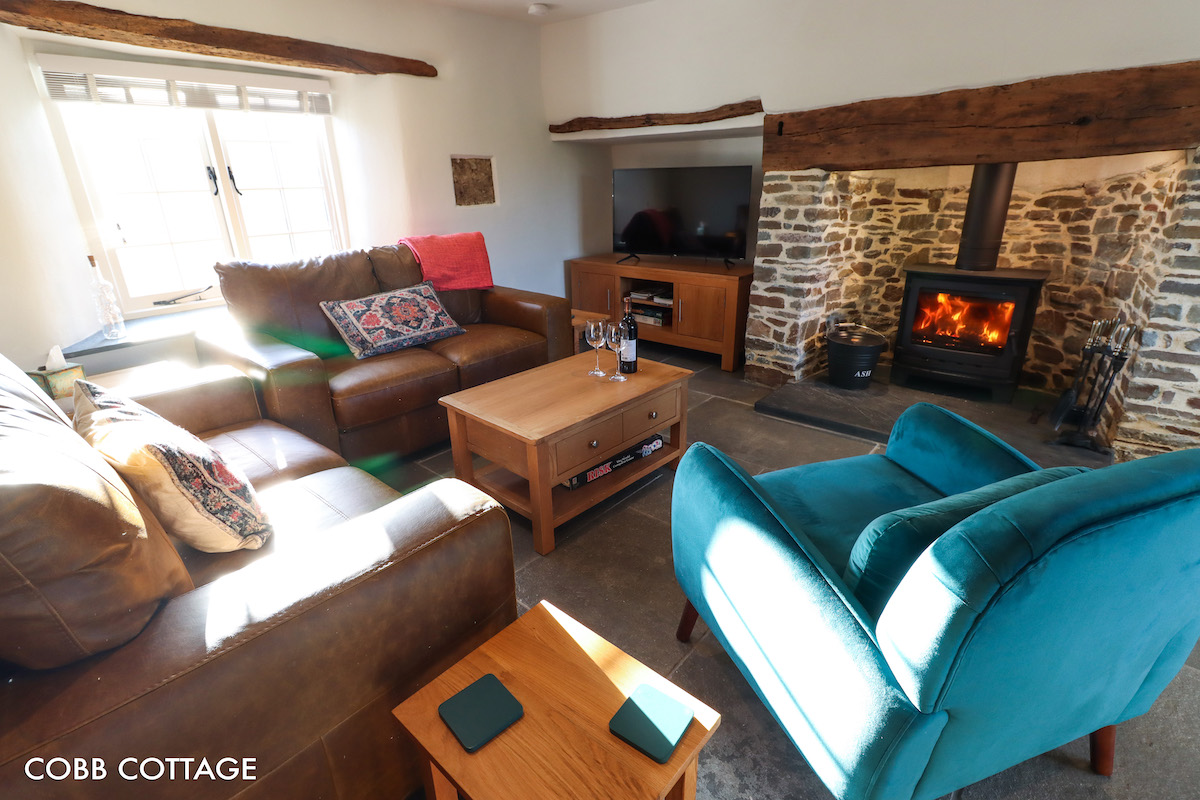 Cobb Cottage is the lower part of a 450 year old Devon Cobb (Mud) Longhouse ! we have left part of the Cobb wall exposed in the lounge !