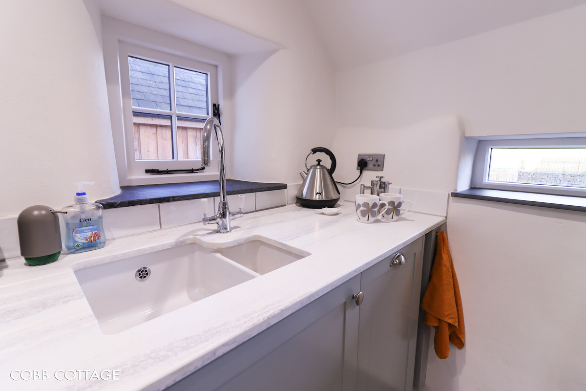 We have lovingly renovated Cobb Cottage to future proof it, with our ground source heat pump delivering energy efficient underfloor heating and hot water, it is rated "A" on the EPC but is our most Carbon negative cottage at a Negative 2.8 Tonne of Carbon Per Year !