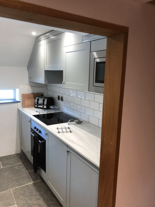 The kitchen although small has an induction hob, electric oven, fridge freezer , microwave, kettle, toaster, washer dryer and slimline dishwasher and hopefully everything you need for self catering.