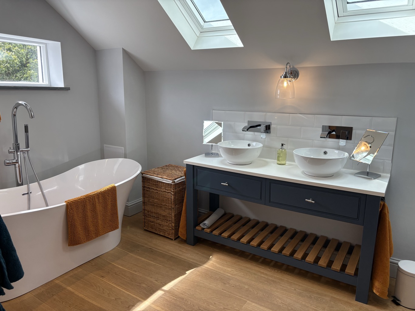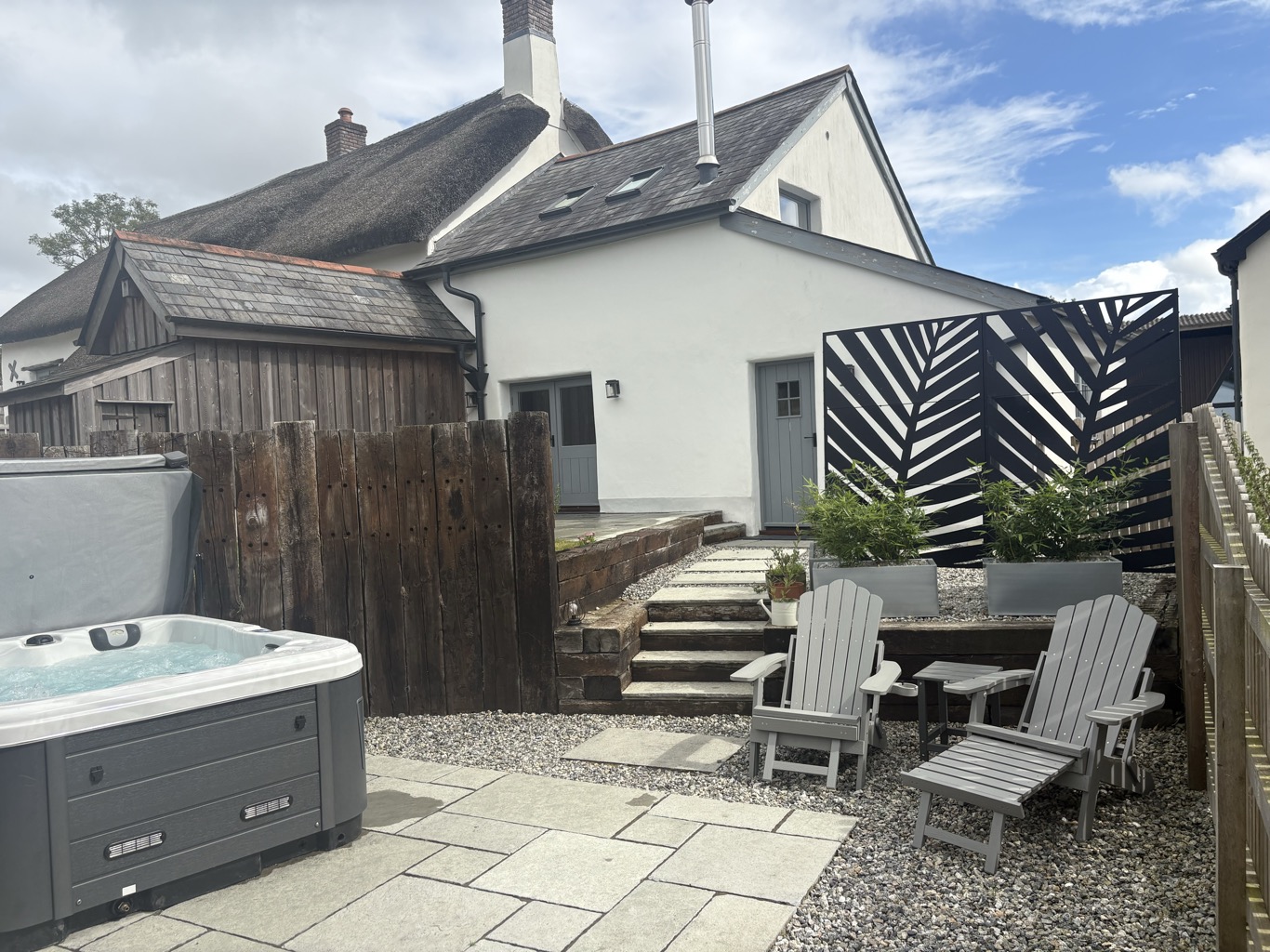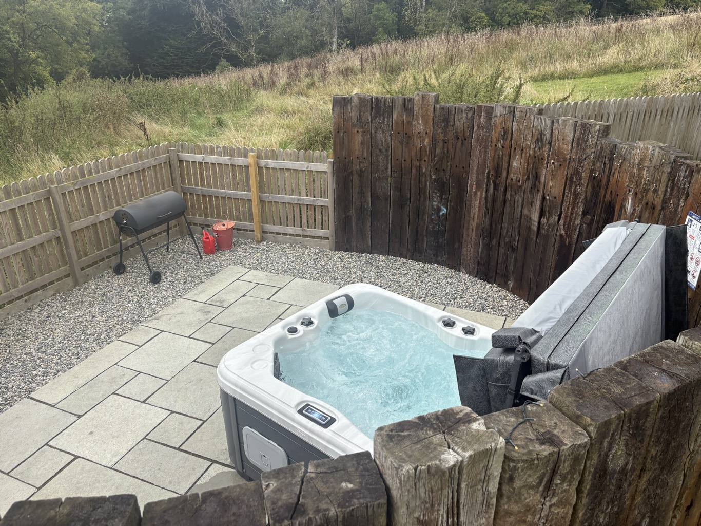 The cottage has a cozy luxurious feel. The kitchen is well equipped with everything you would need for your home away from home getaway. Upstairs the bedroom and ensuite bathroom have been designed to give a boutique hotel feel , with a 2 person freestanding bath and seperate shower (rain and handheld) and double sinks. Outside you have a luxury private Hot tub Area , sheltered behind a gently curved wall of reclaimed sleepers with two Adirondack reclining chairs and a Charcoal BBQ.Between Guests the Hot Tub is fully system flushed , refilled and heated ready for your arrival, as we follow Hot Tub regulations the Hot Tub is cleaned and tested every day ( we will need to enter the hot tub area - but will try to do this when you are out exploring )