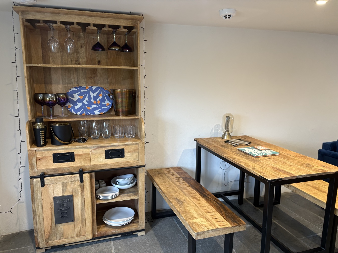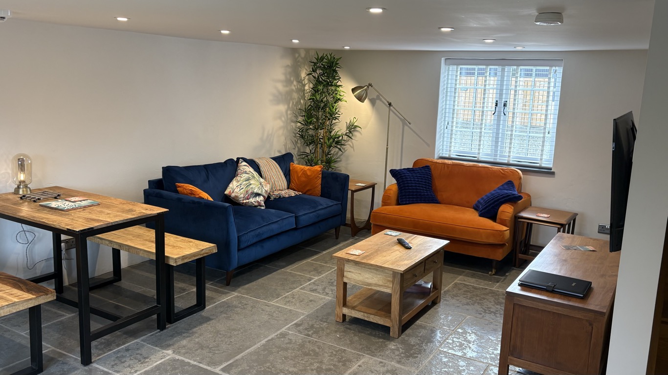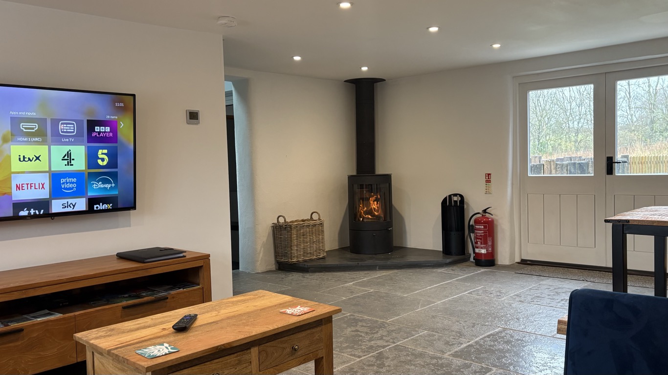 The lounge has a modern log burner 2 comfy sofas a small dining table seating 4 , smart TV and patio doors onto the garden patio with Bistro set for morning coffees and sundowner cocktails !