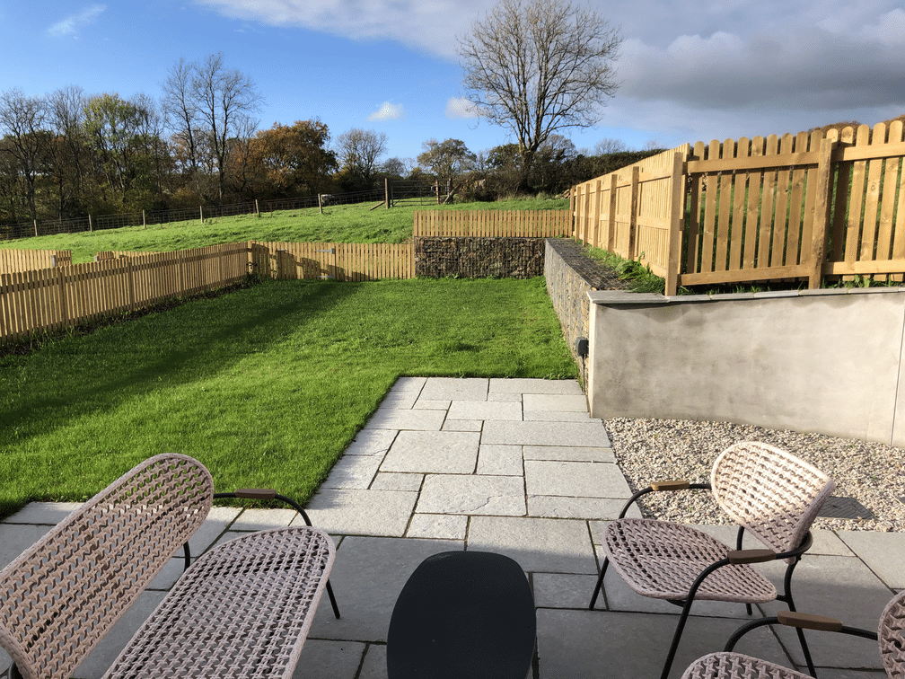with patio doors to the enclosed garden with views over our fields